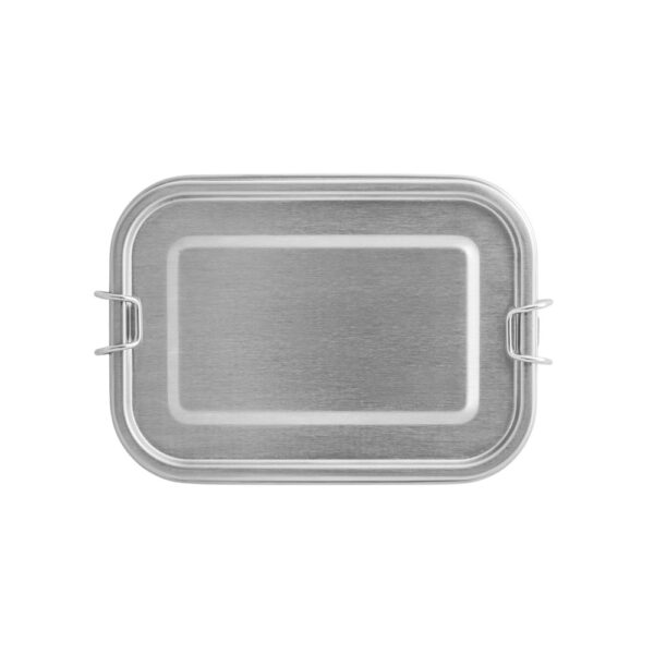 PP and PS lunch box with 2 compartments (680 mL each) and 1 removable divider. Includes 3 pieces of cutlery: fork, knife and spoon. Closes with an elastic band and is suitable for microwave, without the lid