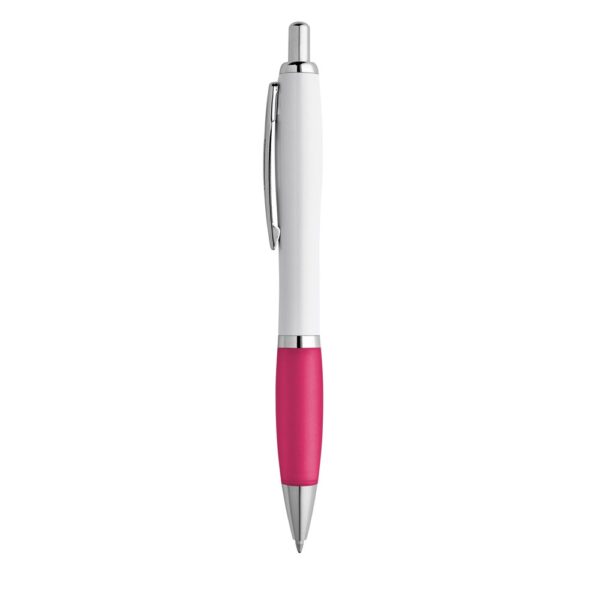 ABS ballpoint pen with a solid, glossy finish. It features a large clip and blue writing. The clip’s proportions allow for various customization options. Available in a wide range of colors