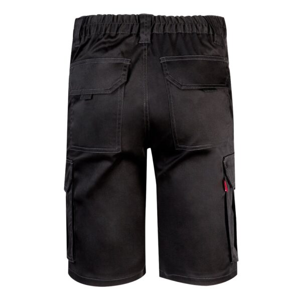 Multi-pocket stretch Bermuda shorts (240g/m²), in cotton (46%), EME (38%) and polyester (16%). With elasticated waistband and six pockets (2 French pockets, 2 side gussets and 2 back pockets)
