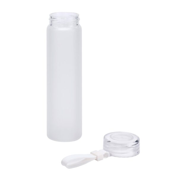 Borosilicate glass bottle with screw-on lid in AS. Bottle with a matte gradient finish and a silicone handle on the lid. Volume-capacity 470 mL. Supplied in a gift box