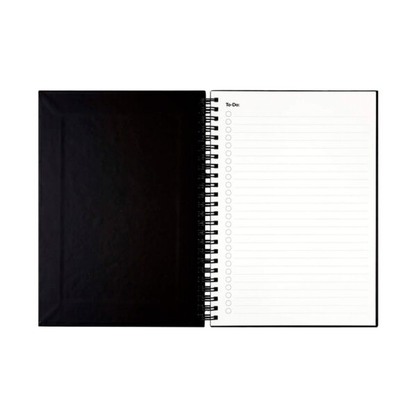 A5 notebook designed to be versatile throughout your working day. Composed of a rigid cover made from 80% recycled materials (recycled polyester and recycled PU) divided into two blocks: the first with 128 lined pages and the second with 128…