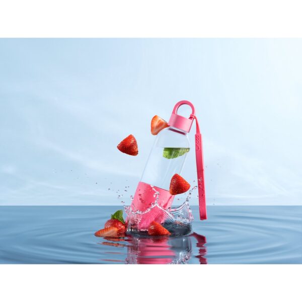 Bottle in high quality Tritan™. It has a watertight screw-on cap with silicone gasket to prevent spills. For easy transport, it also contains a removable silicone base that protects against damage if dropped and a handle attached to the lid.…