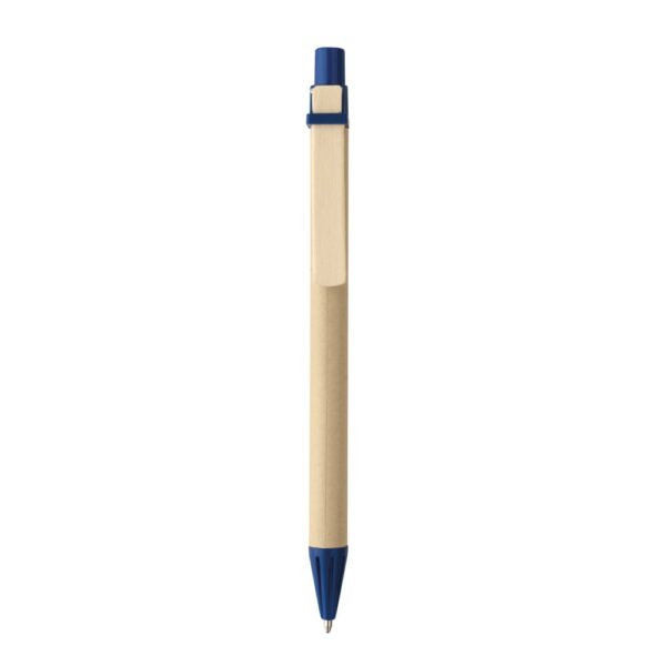 Kraft paper ball pen with wooden clip. ABS details. Black ink. As the product is made from natural materials, the colour and the printing result may vary between products