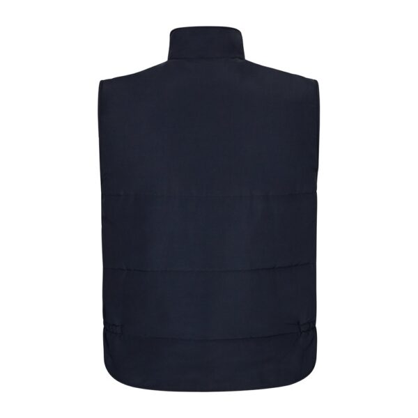 Padded vest (220g/m²), reversible and multi-pocket, in polyester (100%), with reversible zip and puller. The reversible part has reflective stripes on the torso and windproof strips on the armhole. The vest has a side waistband and 4 pockets (2 chest…