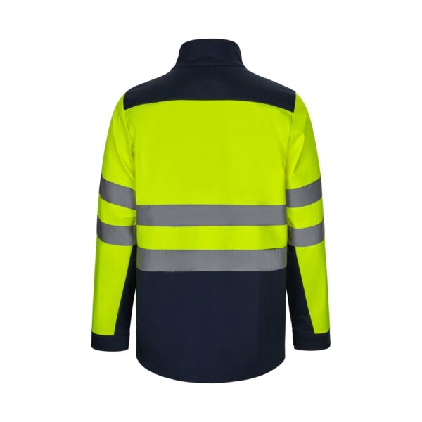 Two-tone soft shell jacket (280g/m²), in polyester (96%) and elastane (4%). TPU coated and with fleece lining. Central inverted zip in contrasting colour, adjustable cuffs with hook-and-loop. Reflective stripes on the torso and sleeves. Contains five pockets: 3 zipped pockets…