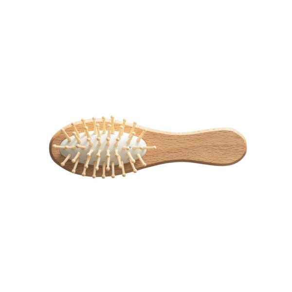 Hairbrush with wooden handle and bamboo bristles. Ideal for travelling. Supplied in kraft paper gift box. As the product is made from natural materials, the colour and the printing result…