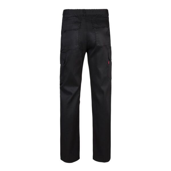 Multi-pocket twill trousers (190g/m²) in cotton (35%) and polyester (65%). With elasticated waistband and six pockets (2 French pockets, 2 side pockets and 2 back bellows pockets)