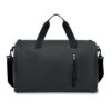 Duffle bag in soft PU with foam reinforcement to the base. One main compartment, zippered front pocket. 210D RPET polyester lining. 2 handles and one adjustable and detachable shoulder strap