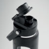 High borosilicate glass bottle with silicone see-through sleeve with PP lid with carry handle. Leak-free. Capacity: 750 ml.